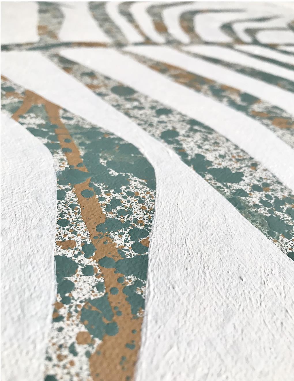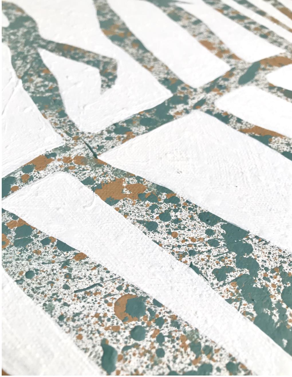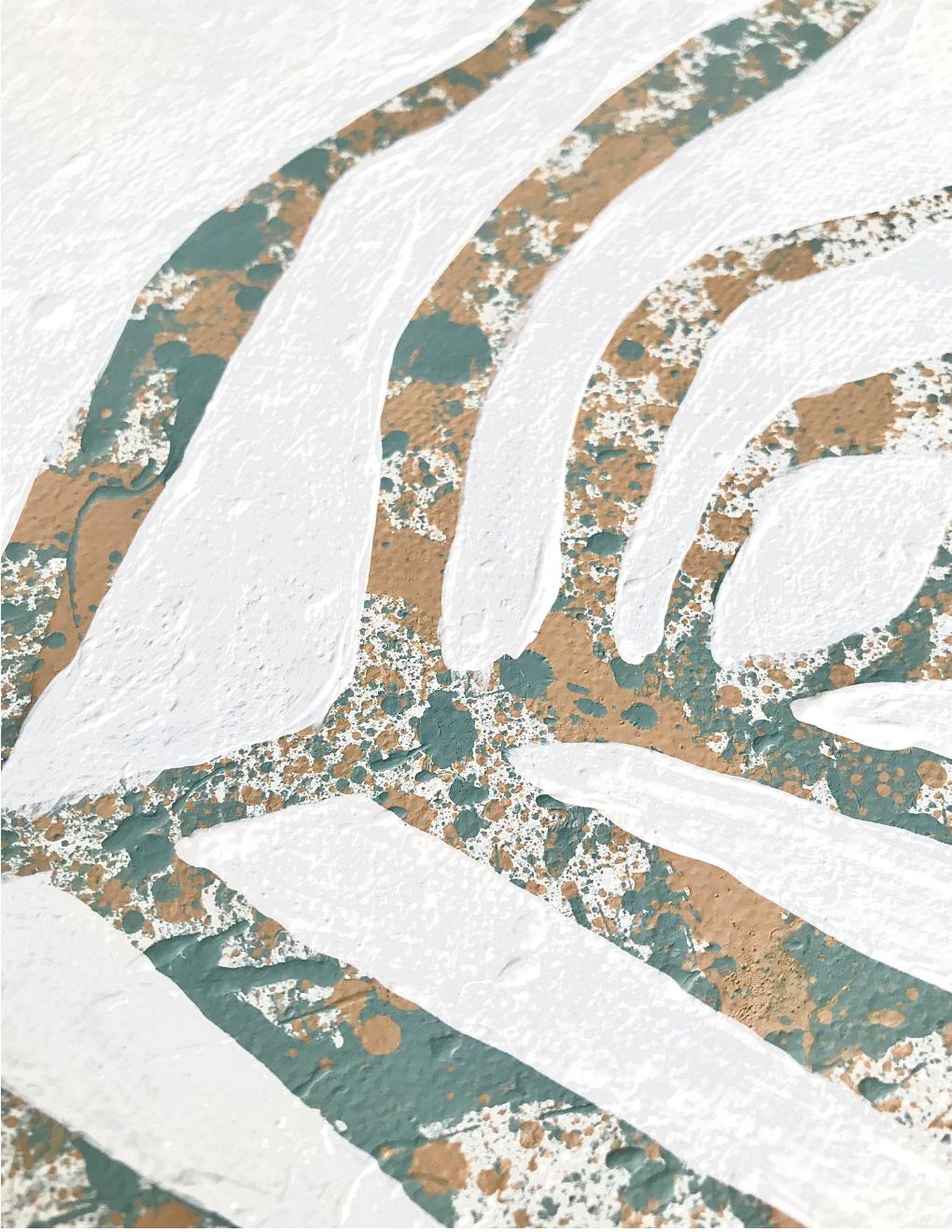 "Palms" - A 30" x 36" acrylic splatter piece created to capture the simplicity of the islands while using warm and natural tropical tones. This piece will fit perfectly in any home looking to spice up a wall maintaining a clean and simple look.