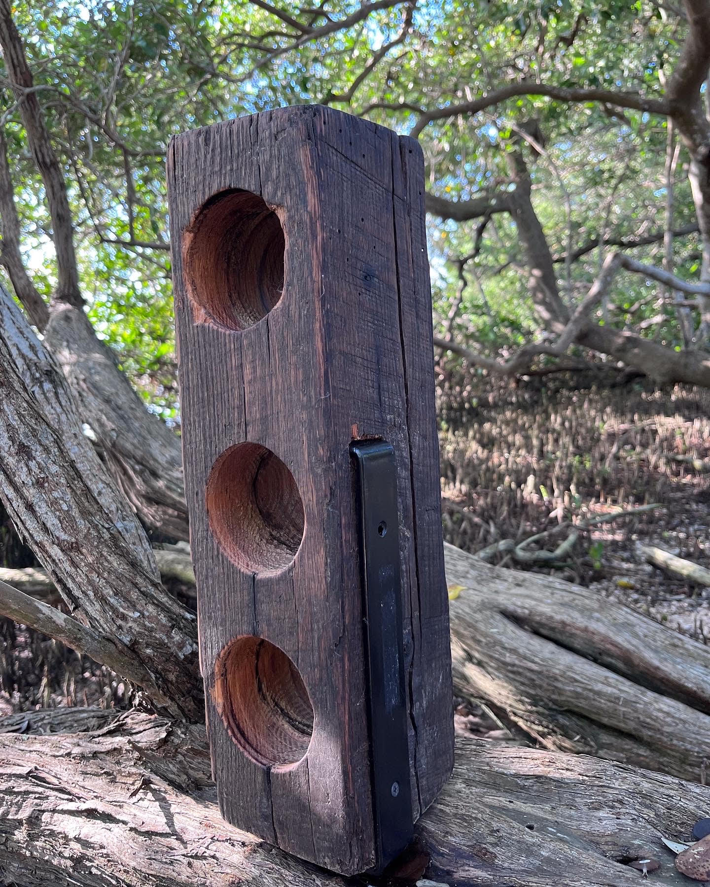 This beautiful yet simple 3 bottled wine rack was crafted from a old beam I found washed on the shores here in Tampa Bay. This wine rack can hold 3 standard 3.5" diameter bottles, and will bring a rustic yet modern touch to your kitchen or bar. Please contact lazehomedecor for recieving options if interested, standard shipping not available due to product weight.